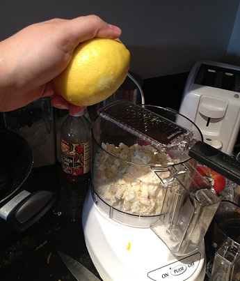 Place feta, lemon zest and juice, garlic and olive oil in a blender and blend until smooth.